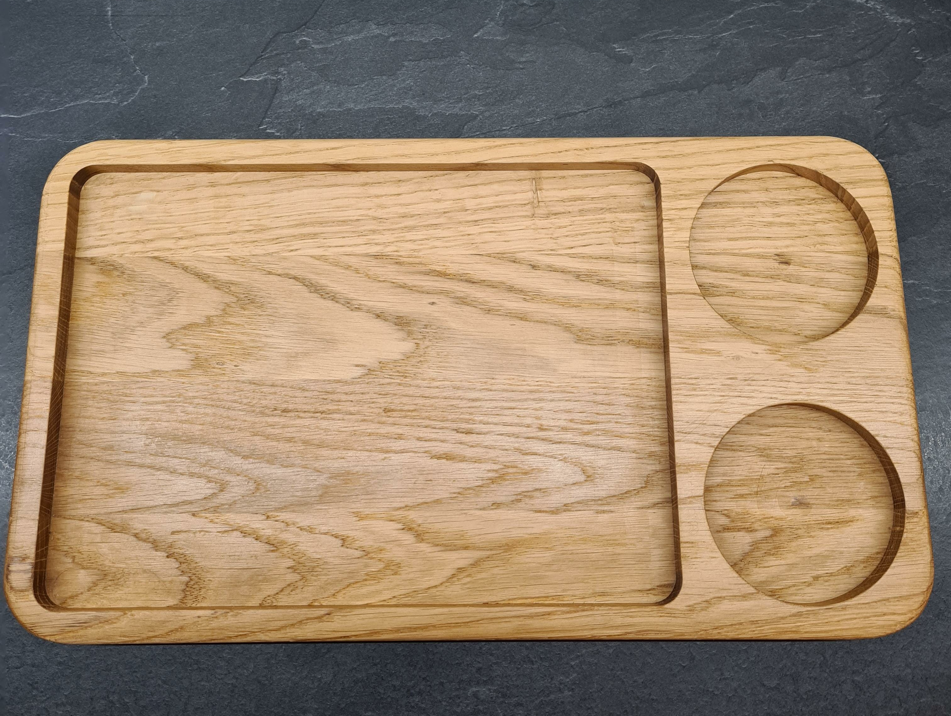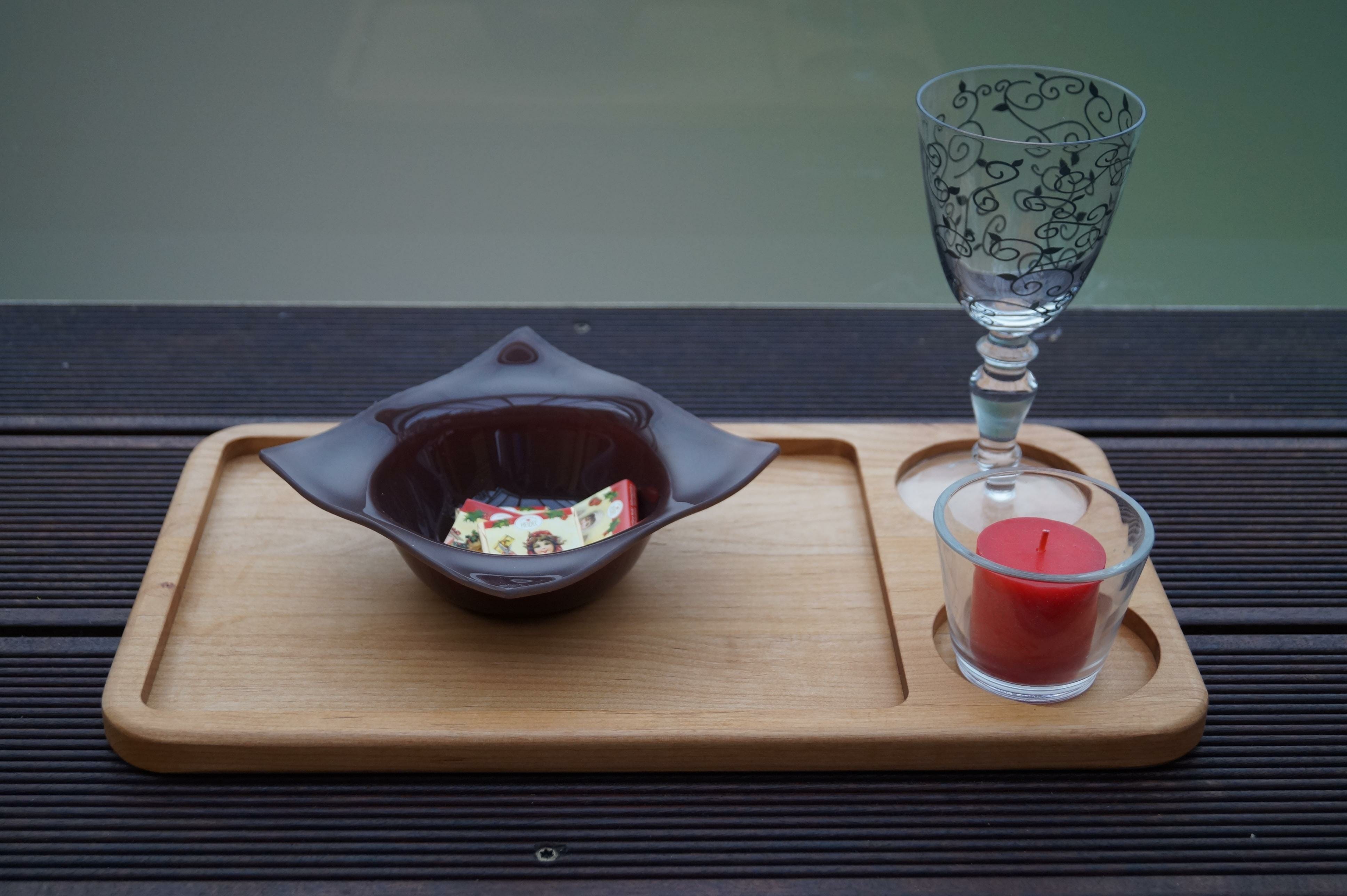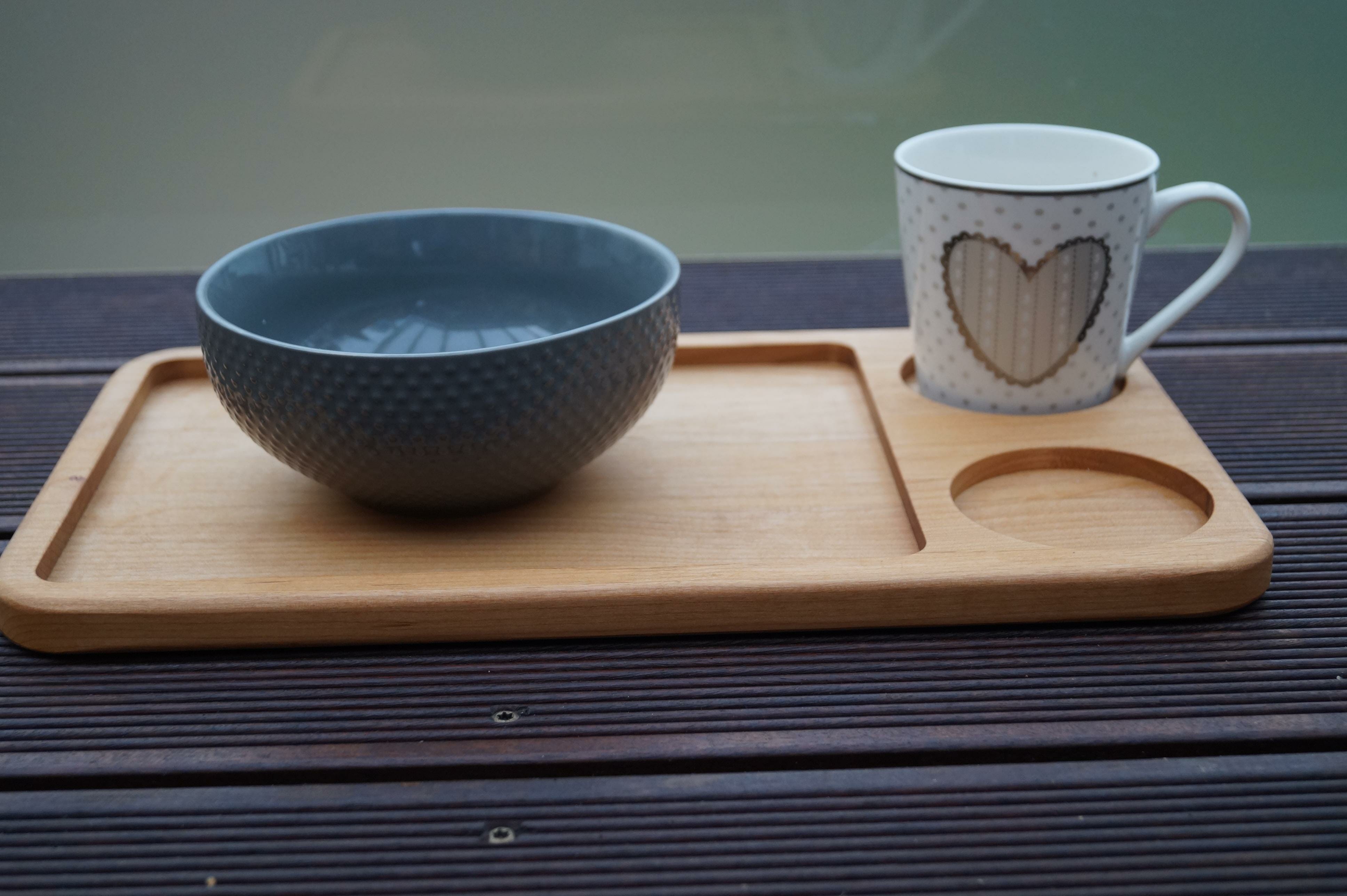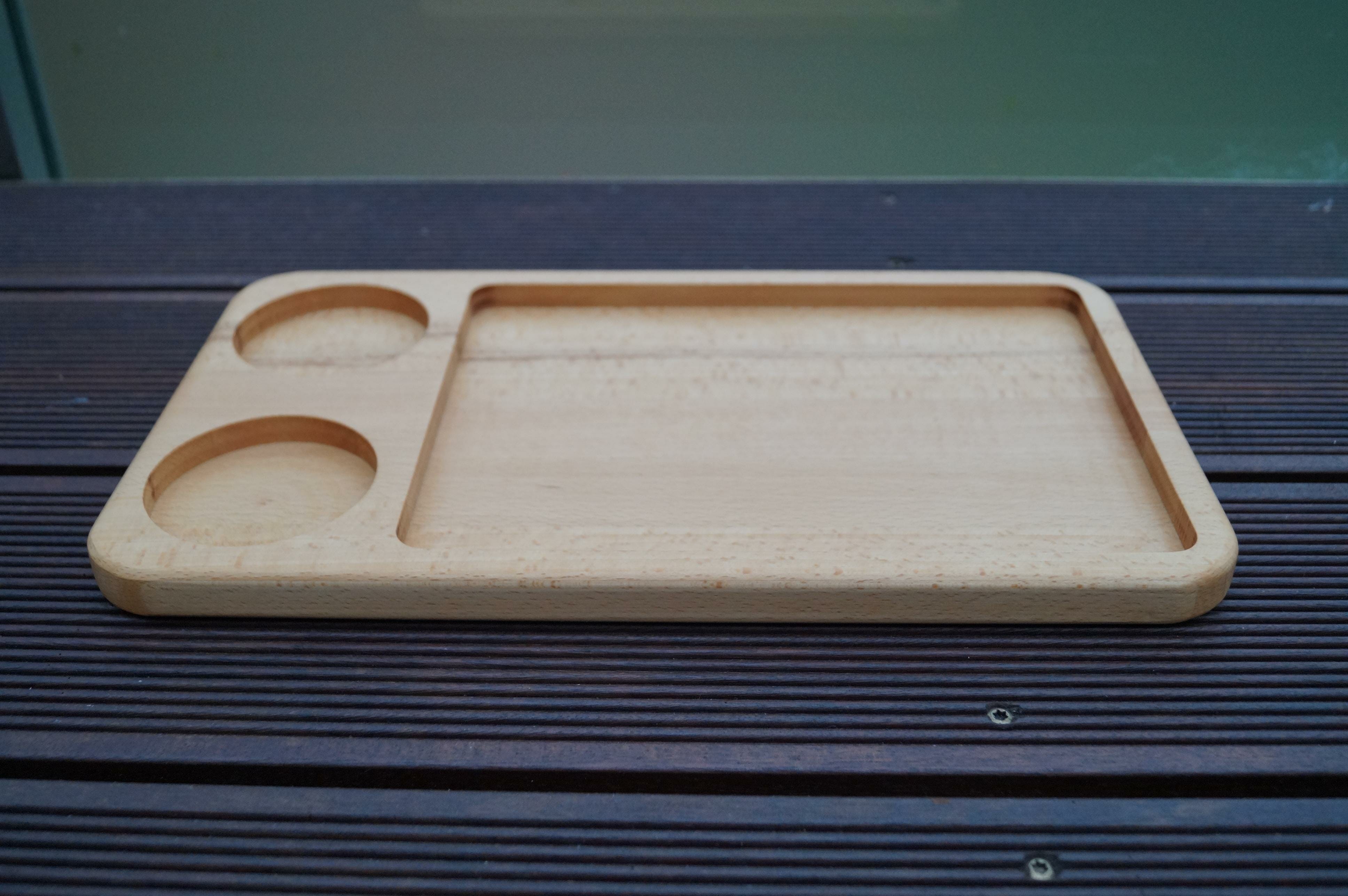 Die Tabletts sind in drei verschiedenen Holzarten erhältlich. Ob beim Camping oder zu Hause, ein idealer Helfer für jeden Zweck.Sie haben zwei Aussparungen für eine Tasse oder ein Glas und eine weitere Aussparung für einen Teller oder eine Schale.